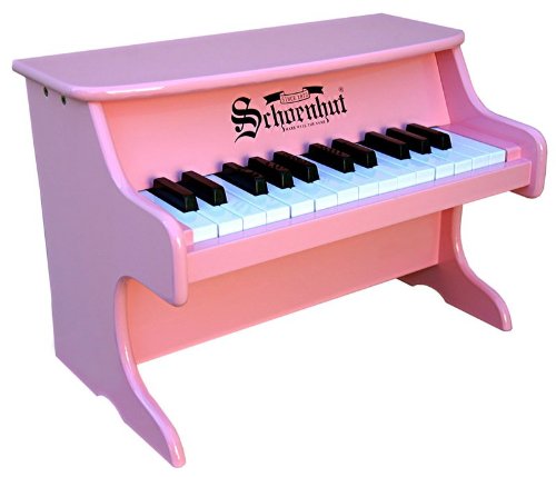 Schoenhut's 25 key tabletop is an excellent choice for a toddler's first piano. Both fun and educational, playing this instrument develops eye-hand coordination and promotes musical creativity. Lovely chime-like notes are produced by little hammers striking steel music rods. The width of the keys promotes proper finger placement, enabling an easy transition to a larger piano. Always a huge hit as